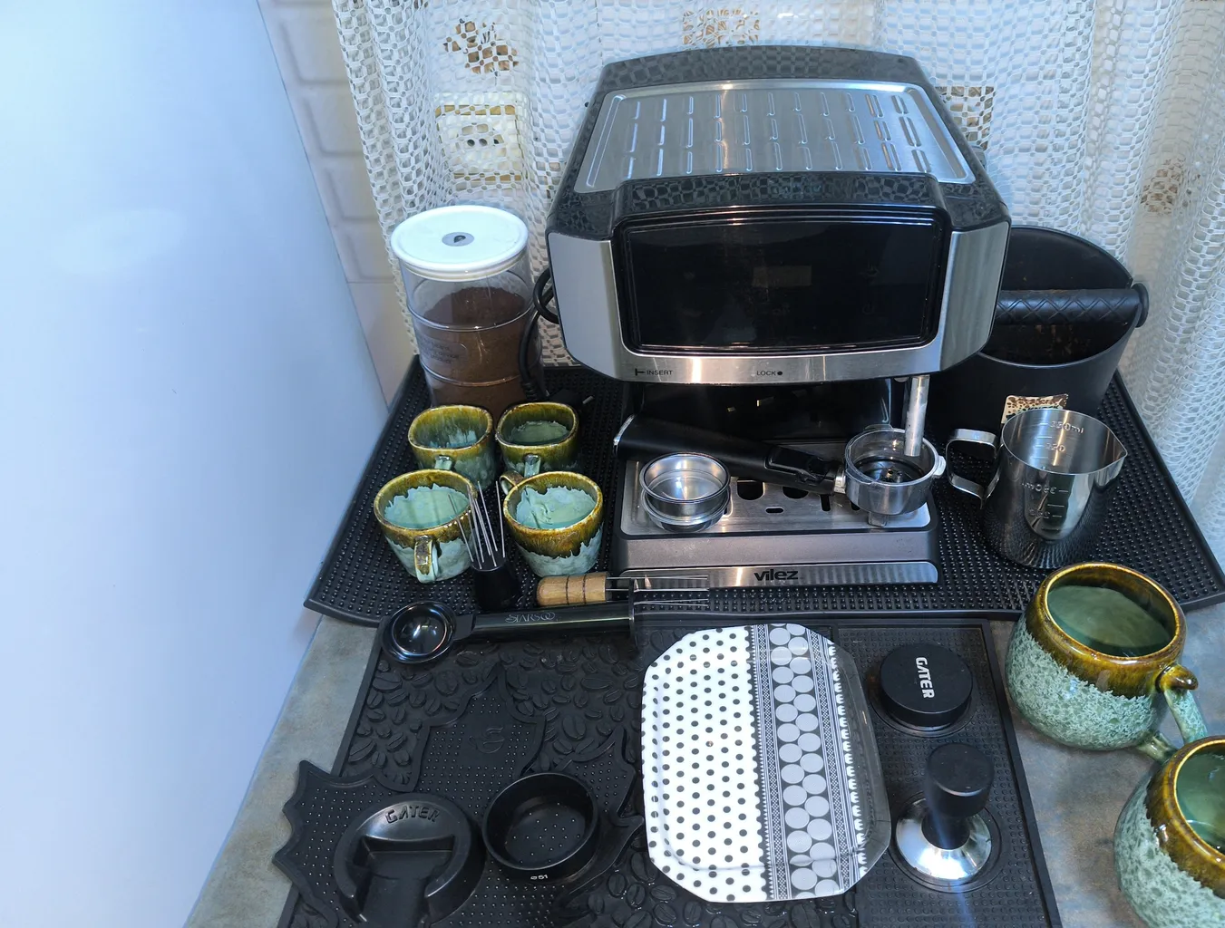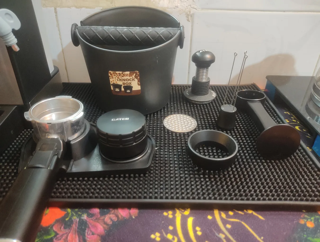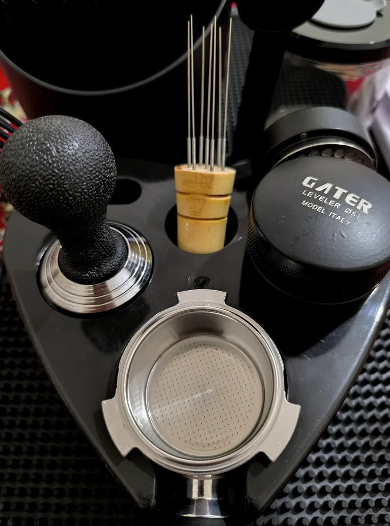 - ⬤ تمپر و مت و لولر : این ابزارها برای فشردهسازی و یکنواخت کردن قهوه استفاده میشوند. خریداران از کیفیت و کارایی بالای این ابزارها راضی هستند، اما برخی از آنها از بوی نامطبوع و کیفیت پایین مواد اولیه شکایت کردهاند.
