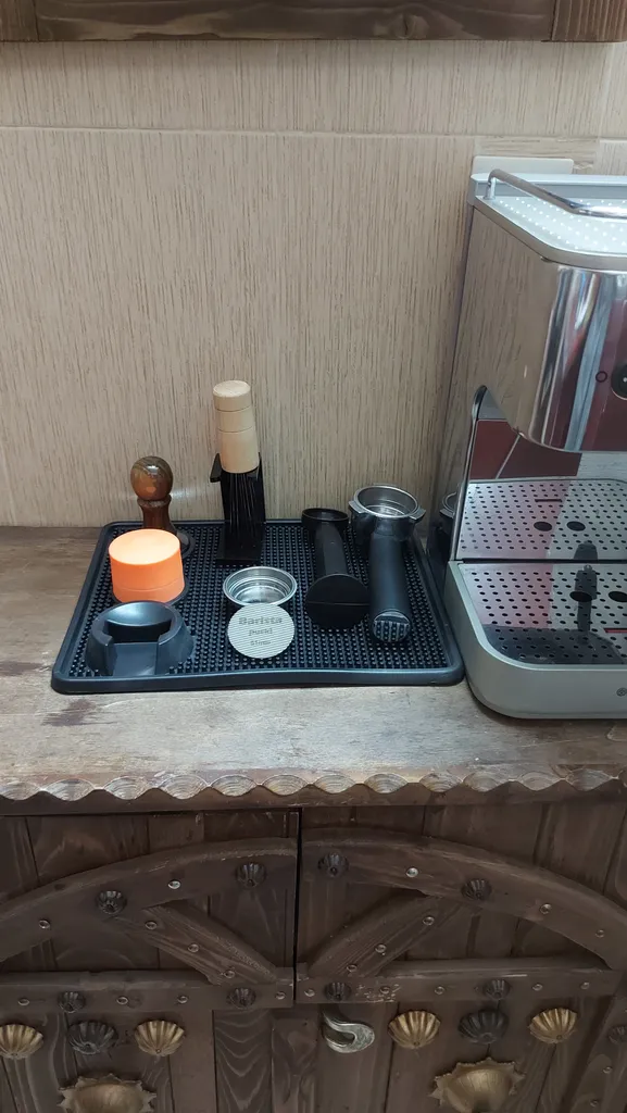 - ⬤ تمپر و مت و لولر : این ابزارها برای فشردهسازی و یکنواخت کردن قهوه استفاده میشوند. خریداران از کیفیت و کارایی بالای این ابزارها راضی هستند، اما برخی از آنها از بوی نامطبوع و کیفیت پایین مواد اولیه شکایت کردهاند.