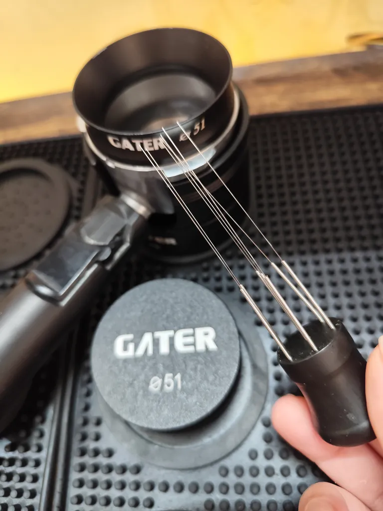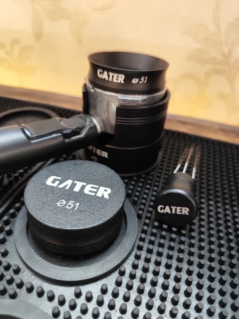 - ⬤ تمپر و مت و لولر : این ابزارها برای فشردهسازی و یکنواخت کردن قهوه استفاده میشوند. خریداران از کیفیت و کارایی بالای این ابزارها راضی هستند، اما برخی از آنها از بوی نامطبوع و کیفیت پایین مواد اولیه شکایت کردهاند.
