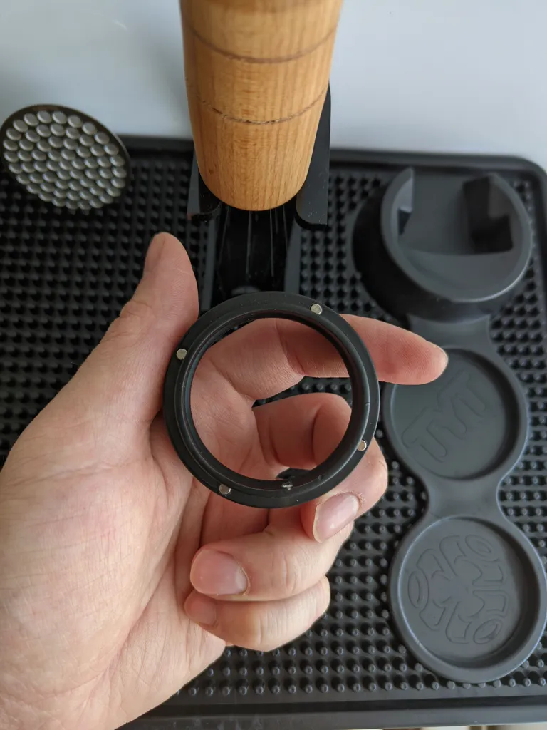 - ⬤ تمپر مت : این نوع تمپرها به دلیل طراحی خاص خود، فشار یکنواختتری را بر روی قهوه ایجاد میکنند. خریداران از تمپرهای مت با کیفیت و مقاوم راضی هستند، اما برخی از آنها از بوی نامطبوع و کیفیت پایین مواد اولیه شکایت کردهاند.