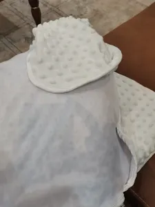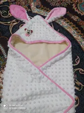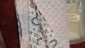 پتوی زیبا و سبک ؛ یه طرف پتو مخمل حبابی نرم رنگ صورتی ملایم و یه طرفش کتان نخ ترک و طرحدار هست پتوی خیلی سبک و خوبی واسه نوزاد تازه متولد شده اس جنسش خوبه و طرح و نقش زیبایی داره روبالشی ست خودش هم از همین تولید کننده داخل سایت موجوده میتونین ست کنین باهم