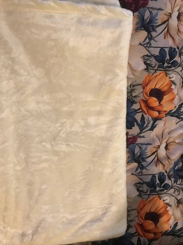 • مهسا دائمی : عدم تطابق کالا با عکس ؛ اول اینکه من رنگ نسکافه ای ثبت کردم واسم نخودی فرستادن عکسشو میذارم جنسشو ببینید ودوستان فکر نکنید از اون پلیسه های مخمل اصل هست به هیچچ وجه !!! بنظر من به این جنس میگن حوله ای خلاصه که خیلی مزخرفه و حسابی خورد تو ذوقم ولی حوصله مرجوع کردنم ندارم