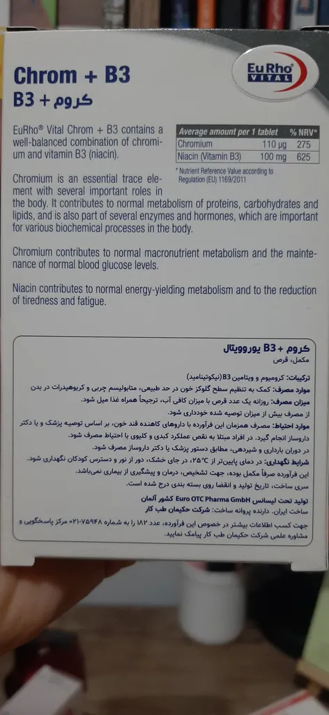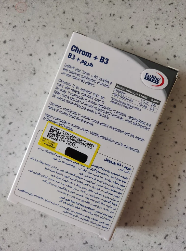نظر و تجربه خرید قرص کروم و ویتامین B3 یوروویتال بسته 60 عددیدر تاریخ ۲۵ فروردین ۱۴۰۴