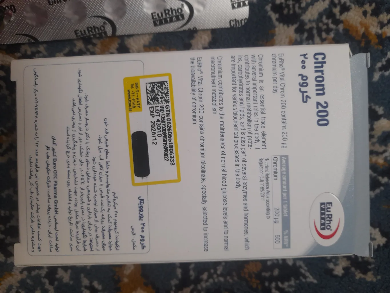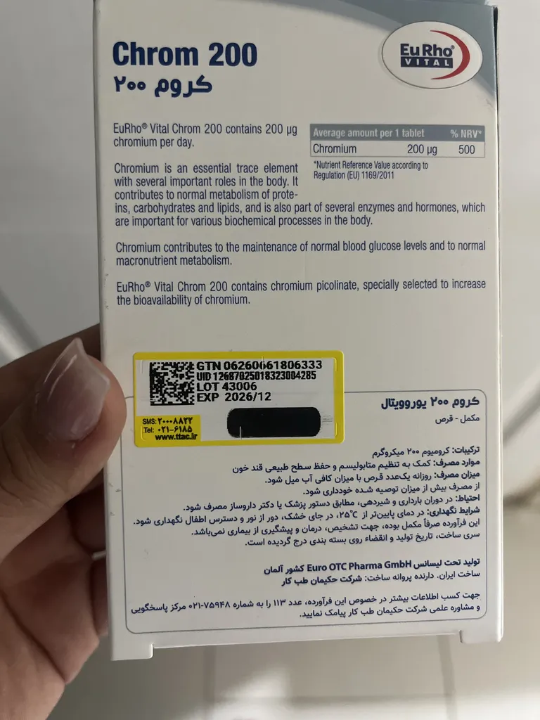 نظر و تجربه خرید قرص کروم 200 میکروگرمی یورو ویتال بسته 60 عددیدر تاریخ ۱۵ مرداد ۱۴۰۴