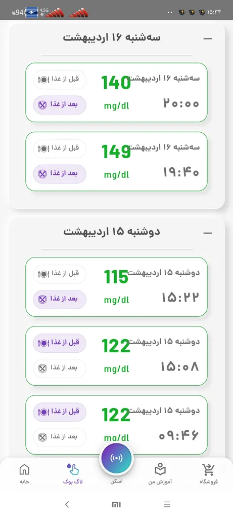 - ⬤ تنظیم تاریخ و ساعت : قابلیت تنظیم تاریخ و ساعت و میانگینگیری از قند خون، از ویژگیهای مطلوبی است که خریداران به آن توجه دارند. این قابلیت به کاربران کمک میکند تا نتایج را بهتر مدیریت کنند و خریداران از این ویژگی ابراز رضایت میکنند.