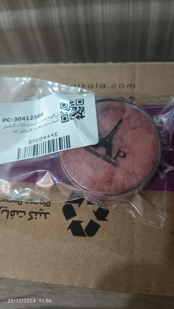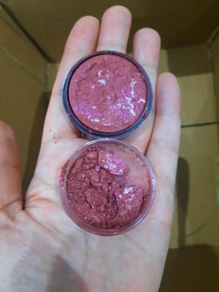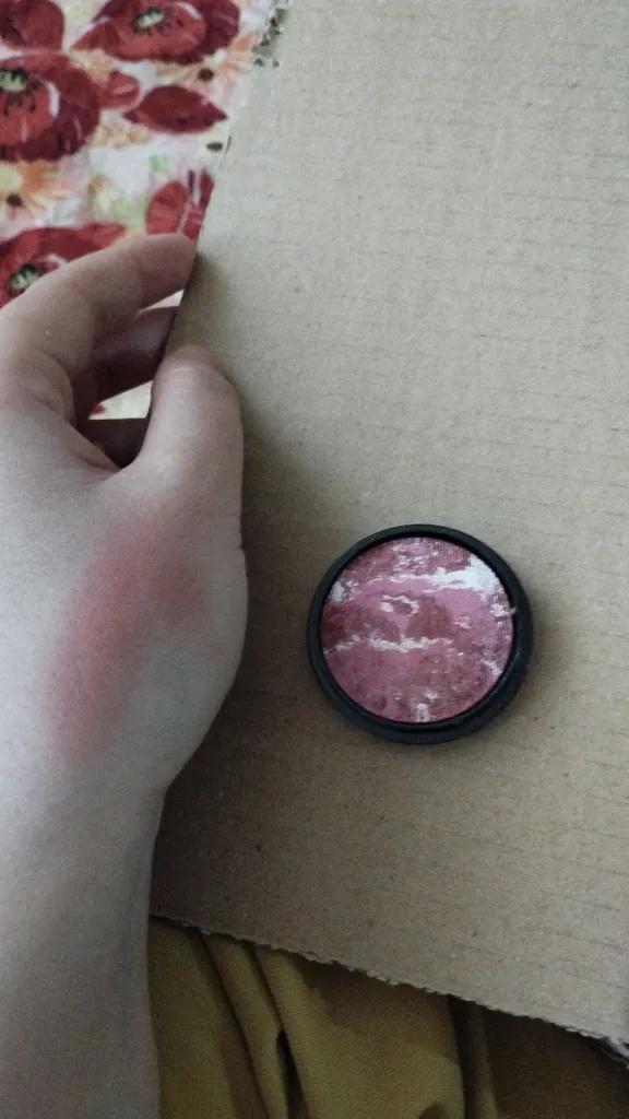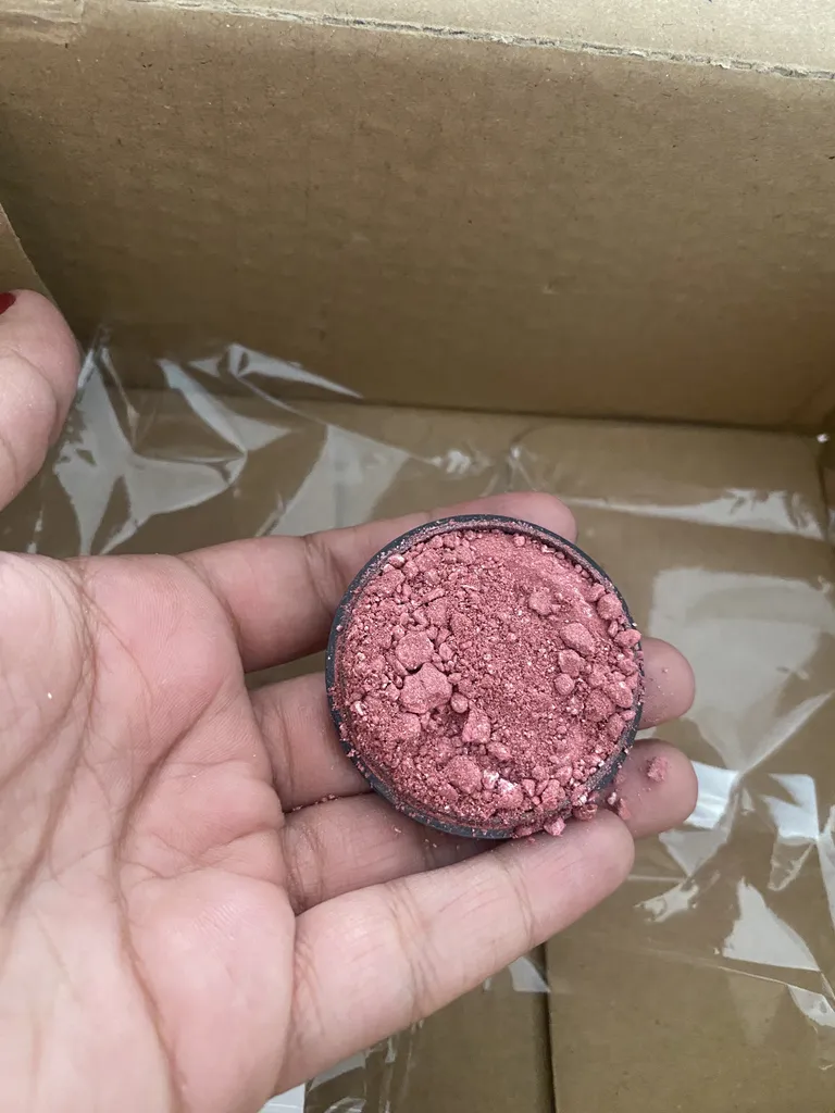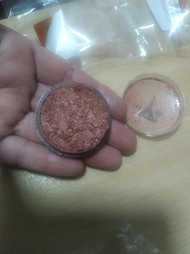 الان دستم رسید رژگونه پودر و خورد شده بود ارزش مرجوع کردن نداشت مرجوع نکردم،رنگش هم صورتی نبود قهوه ای متمایل به آجری رنگ بود موادش هم نرم و یک دست ولی فکر نکنم ماندگاری داشته باشه چون دست کشیدم پاک شد.پیگمنت رنگی بد نبود