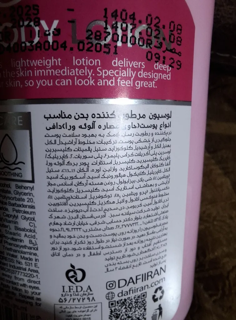 نظر و تجربه خرید لوسیون بدن دافیدر تاریخ ۱۲ مهر ۱۴۰۴