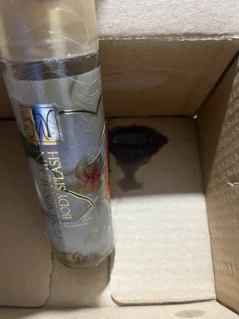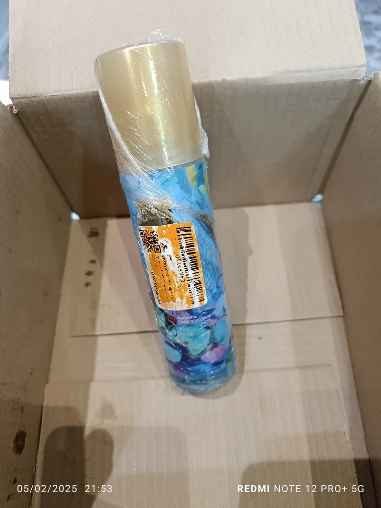 خریدار بدون نام : متاسفانه وقتی بسته به دستم رسید کل بسته و محتویاتش خیس بود جوری که کارتن رو که از مامور تحویل گرفتم کاملا بوی عطر میداد و وقتی کارتن رو باز کردم متوجه شدم قوطی بادی اسپلش نشتی داشته و سر اسپری کار نمیکرد مرجوع کردم اما بوش رو دوست داشتم😓 کاش سالم به دستم میرسید