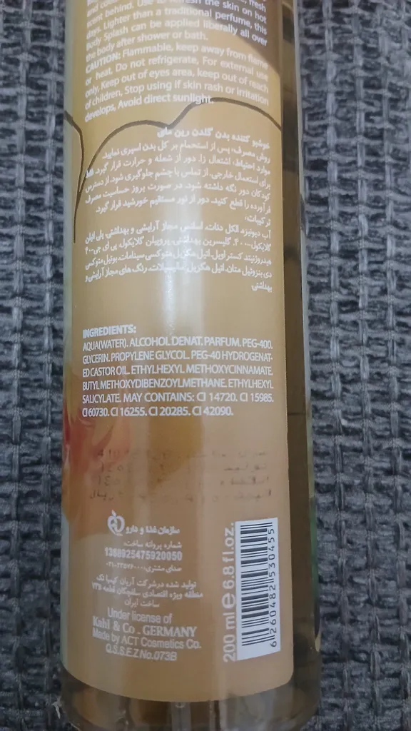 هستی شاه بیگی : بادی اسپلش ک به دست من رسید کمیش ریخته بود ، بعد اینه ک پلاستیک دورشو برداشتم متوجه بوی الکل شدید و کح بودن در اصلی محصول شده، قشنگ این شگلی بود ک خالیش کرده بودن و توش الکل پر کرده بودن چون من این محصوصلو از مغازه گرفتم و اصلا همچین بویی نداشت،