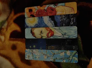 Van gogh bookmarks ؛ من فکر میکردم که دستسازه و نقاشیش هم با دست انجام شده ولی وقتی اومد متوجه شدم که طرحش چاپیه. جنس چاپش خیلی خوبه