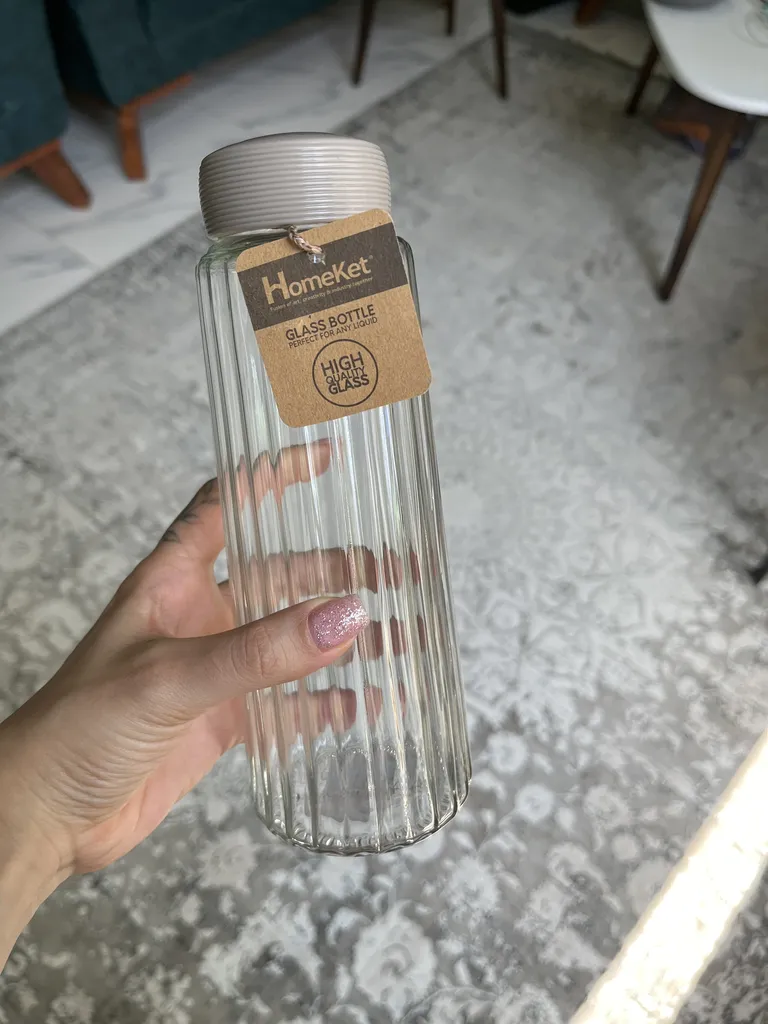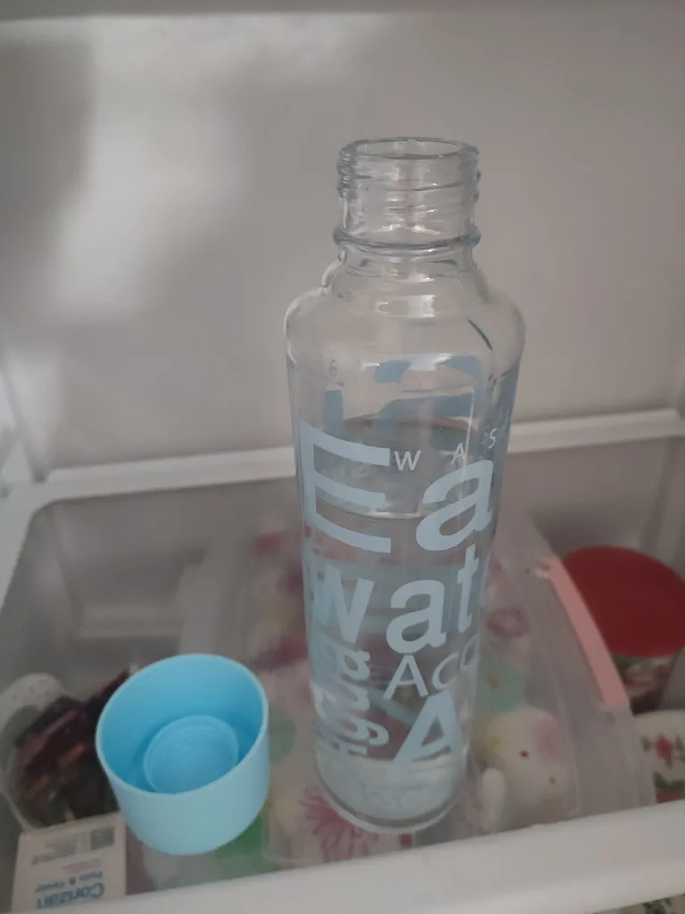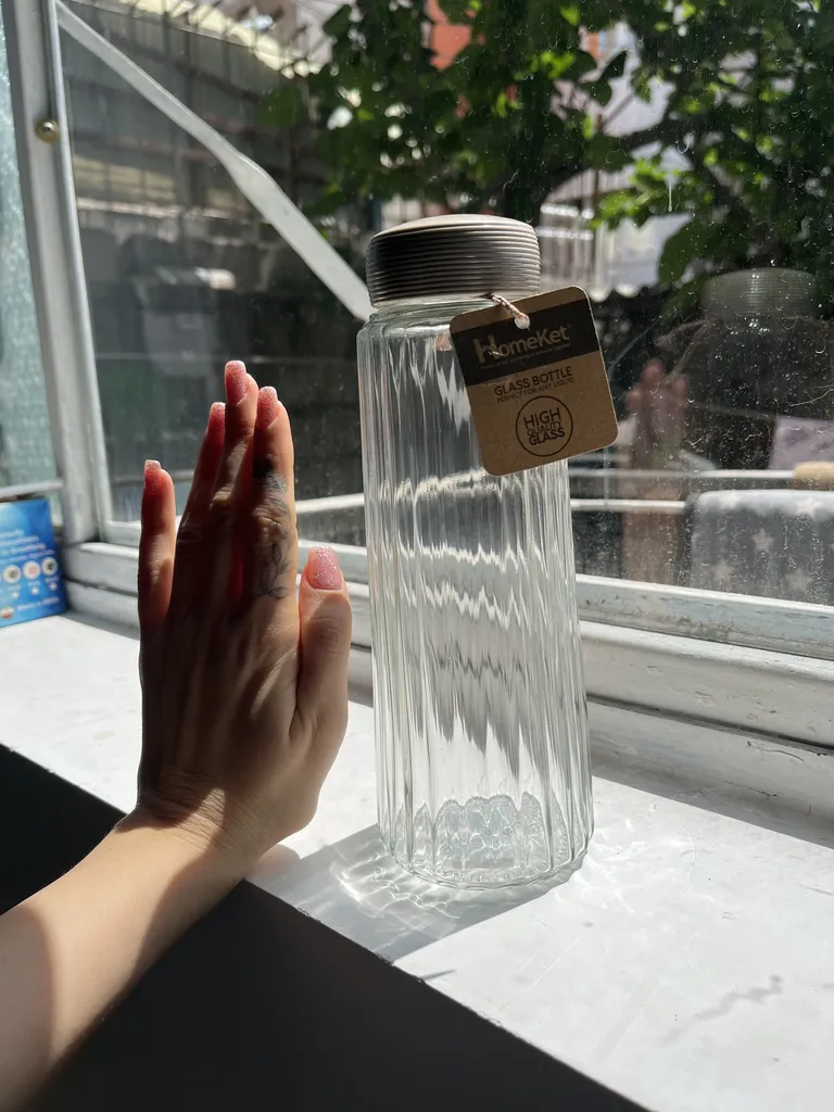 حسن حسین نژاد : اگه سلامتی براتون مهمه از بطری و قمقمه های پلاستیکی استفاده نکنید چون ریزپلاستیکها به مرور وارد خون شما میشه ، این بطری جنسش شیشه است و حجم مناسبی هم داره فقط واسه من درش بسته نمیشد