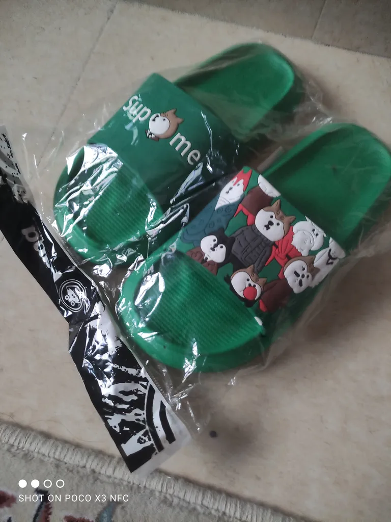 ظاهر خوبی داره ؛ دمپایی نرمیه، چینیه برند کیتو، قشنگه، در مورد جنسش فعلا نمیشه نظر داد، سایز ۳۶ طولش ۲۲ سانته، برای پسرم که سایزش ۳۲ هست گرفتم دو سانت بزرگتره از پاش
