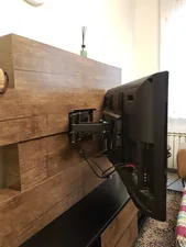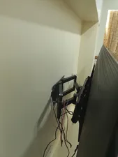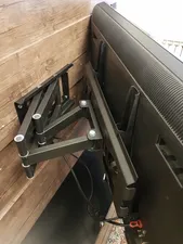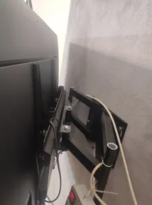 لازم به توضیح است براکت های تلویزیون به سه دسته ثابت، متحرک (با قابلیت چرخش به بالا و پایین) و بازویی (با قابلیت چرخش به بالا و پایین، راست و چپ) تقسیم می شوند، این مدل از نوع متحرک هست؛ هر چند به دلیل شاقول بودن دیوار ها و عدم دسترسی به پشت تلویزیون و پیچ های براکت، لازم است قبل از قرار دادن تلویزیون بروی براکت، بازوهای براکت پیچ شده بروی تلویزیون را کاملا موازی تلویزیون قرار داده و همه پیچ ها را کاملا محکم کرد، یعنی عملا نیازی به براکت متحرک نیست و براکت ثابت هم همین کار را می کند . براکت بازویی هم گران تر است و هم به دلیل فاصله گرفتن بیشتر تلویزیون از دیوار، فشار بیشتری را به دیوار منتقل می کند