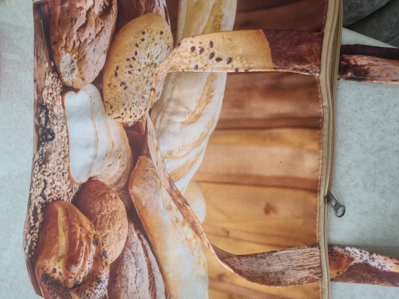 برای خرید نان همراهمون باشه به جای استفاده از نایلون یکبار مصرف و کمک به محیط زیست فقط پارچه ای هست حواستون باشه چون مدت طولانی نان داخلش باشه خشک میشه
