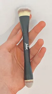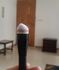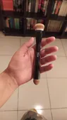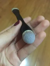 برای کرمپودر زدن خیلی خوبه.البته تراکمش خیلی زیاد نیست اما قابل قبوله.یه کوچولو هم موهاش زبره ولی کرمپودرو خوب میخابونه و رد نمیندازه .البته که توقع داشتم سری بزرگترش ازچیزی که هست بزرگتر باشه.توعکس بزرگتر دیده میشد اما تقریبا باریکه.تو عکسی که گذاشتم با انگشت شستم سایزشو تخمین بزنید.طرفی که کوچیکتره کم تراکم تره و فک میکردم برای کانسیلر زدن مناسب باشه اما یکم رد مینداخت و یکدست نمیکرد.بجای این میشه یه براش کرمپودر یه طرفه گرفت چون طرف کوچیکترش عملا بلااستفادس