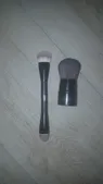 برس کوچک! ؛ من به عنوان برس رژگونه گرفتم اما خیییلیییی کوچکتر از برس رژگونه هست و بیشتر به نظرم برای کانتورینگ یا زدن کرمپودر مناسبه تو تصویر هم برس رژگونه معمولی رو کنارش گذاشتم که خودتون مقایسه کنید
