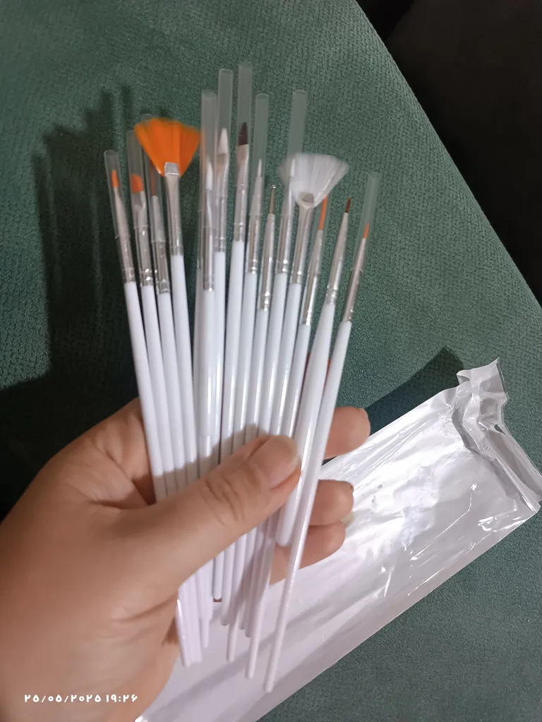 من همیشه از دی جی کالا وسایل هام رو سفارش میدم و سالم به دستم میرسن، 15 تا قلمو هست که تقریبا اندازه ای خودکار هست، یه قلمو نقطه گذار هم داره که این ویژگی خوبش هست