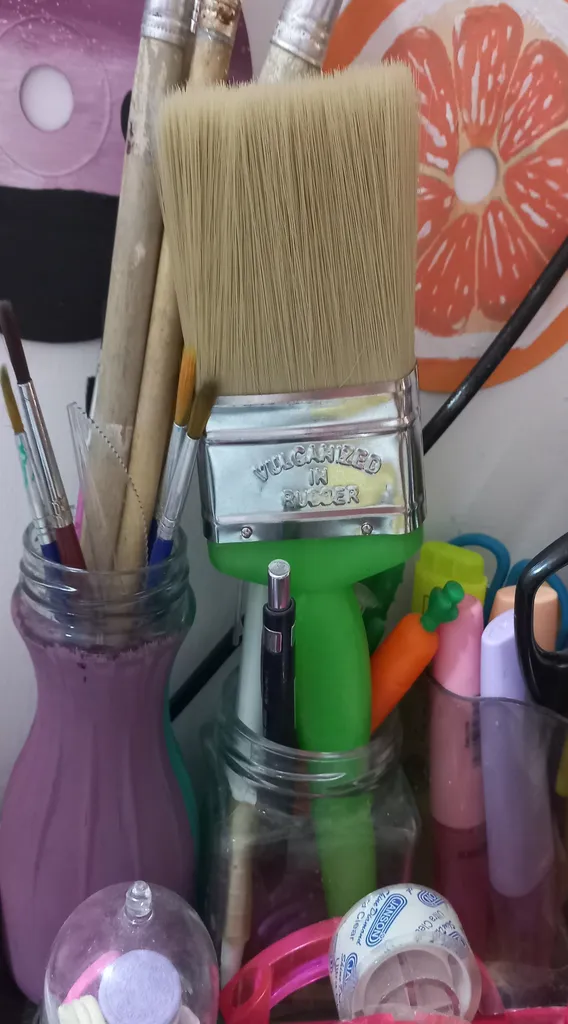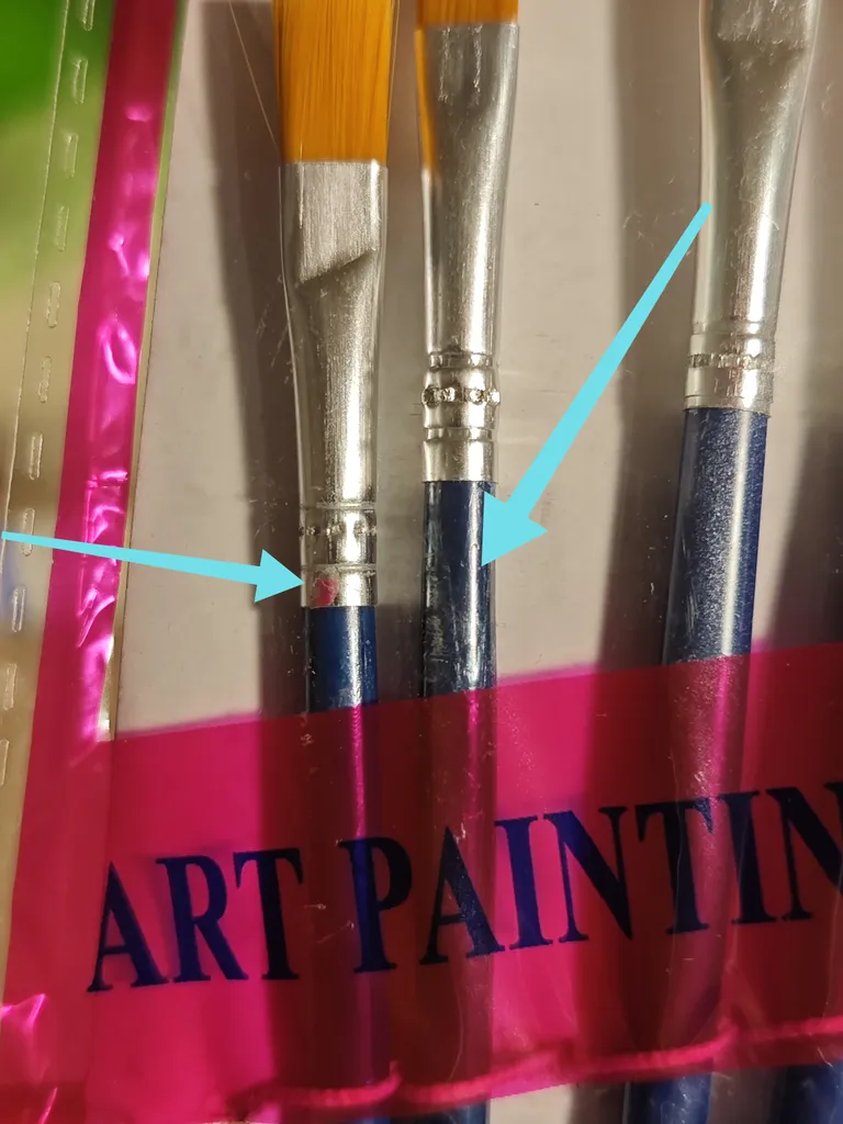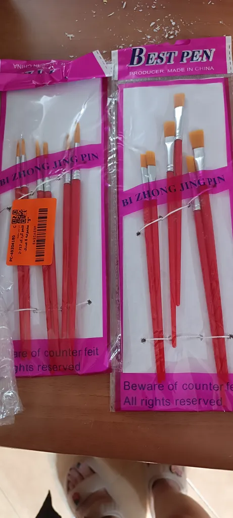 حامد محمدی شجاعی : یه خورده لق و تق بود و یکیش کامل چسبی بود ، اندازه ها یکی بودن و من خودم میخام نصف پر یکیشو قیچی کنم تا قلمو کوچیکی داشته باشم،چون قیمتش کم بود کیفیت چندانی نداشت ، اما کارمو راه میندازه ، راستی دسته قلمو مارک داشت که انگار ازش استفاده شده و کم رنگ شده و رفته رنگش