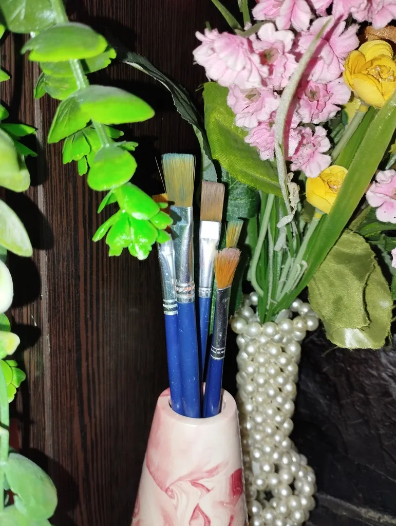 دقت کنید اندازه قلمو ها حدود ده دوازده سانتیمتره و برای کارهای کوچیک و ظریف مناسبه. عکسهاش رو هم گذاشتم