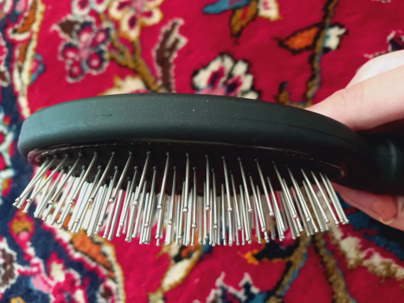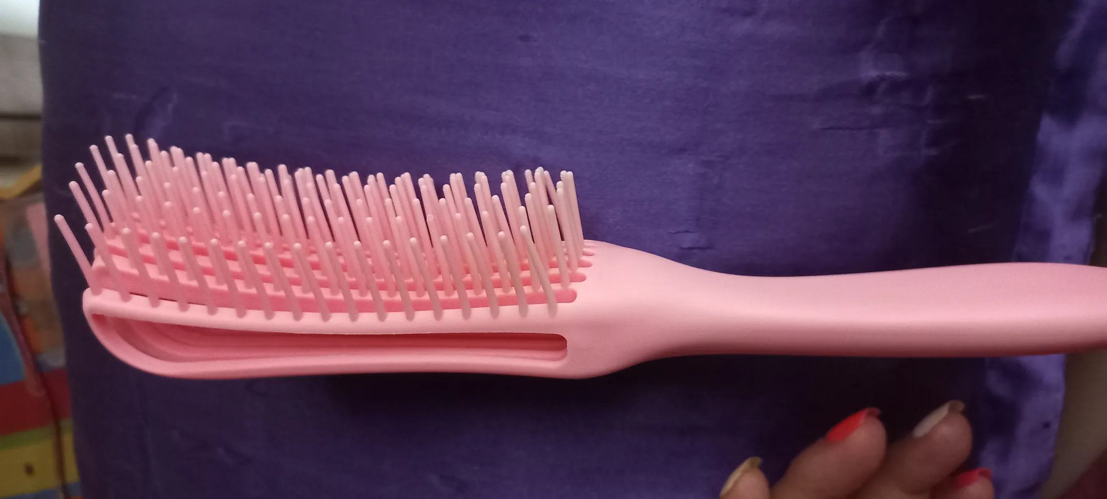من راضیم از این برس نسبت به برس های معمولی برای مو های فر و مجعد خوبه و موقع برس کشیدن دیگه مو ها خیلی اذیت نمیشن. ولی اون میله پشتش وقتی یکم محکم بکشی، تند تند جدا میشه ازش و کاریش نمیشه کرد.نمیگم اون میله رو کلا آدم نندازه. در هر حال بنظر من اگر مرددین بخرین