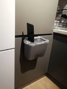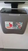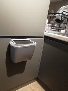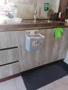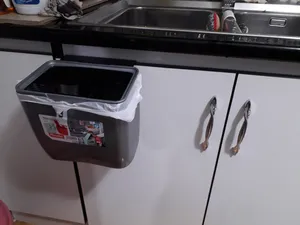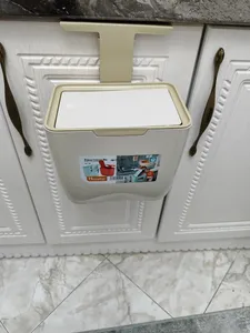 سطل محکم و خوبیه و رنگش زیبا و شیکه نیاز به سطل بزرگ تو آشپزخونه ندارم اینجوری هر روز خالی میشه و زباله بو نمیگیره درضمن ارتفاع آویز در بیشترین مقدار ۳ سانت هست که تو عکس مشخصه همه از جلوی سطل عکس گذاشتن من از پشت تا آویز دیده بشه و رنگش طوسی تیره هست