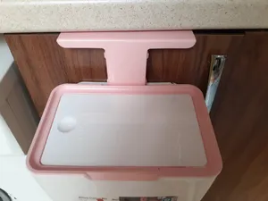 جنس و رنگش خیلی خوب بود و به وسایل سیلور آشپزخونه میومد فقط در و آویزش مشکی بود ولی بد نبود. جنسشم کاملا صاف بود و برای شستشو خیلی خوبه. ولی اگه برای داخل کابینت زیر سینک میخواین زیر سینک نرفت به خاطر همین نشد داخل کابینت استفاده کنم. در دکمه ایشم خیلی خوبه و استفاده رو راحت و تمیز کرده