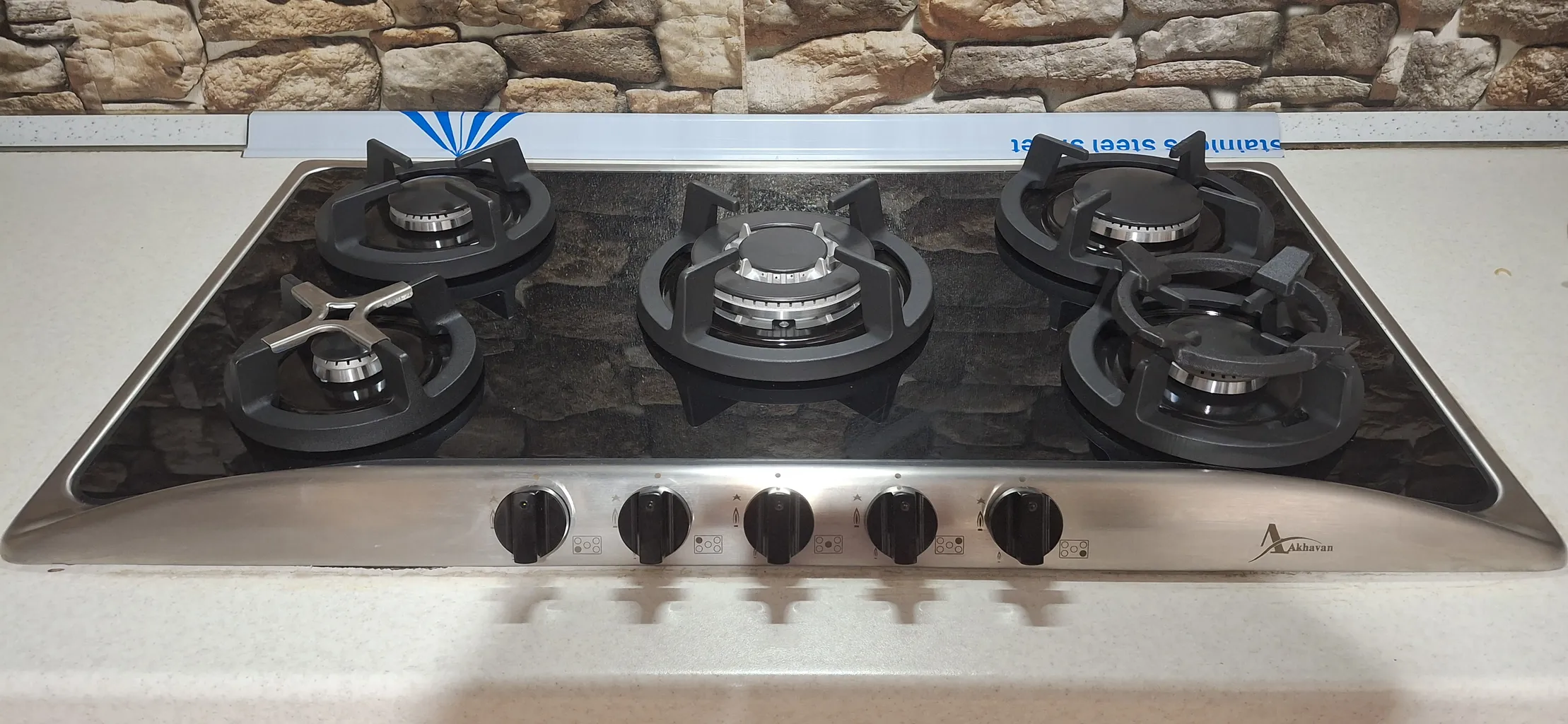 - ⬤ اجاق گاز 5 شعله : این اجاقها برای خانوادههای بزرگ و کاربرانی که به پخت و پز زیاد نیاز دارند، مناسب هستند. خریداران از قدرت حرارتی بالا و امکان پخت همزمان چند غذا راضی هستند. این اجاقها معمولاً دارای طراحی زیبا و کیفیت ساخت بالایی هستند. با این حال، برخی به فضای زیادی که اشغال میکنند و هزینه بالای آنها اشاره کردهاند. همچنین، برخی خریداران به مشکلاتی مانند عدم تعادل شعلهها و نیاز به فضای بیشتر برای نصب اشاره کردهاند.