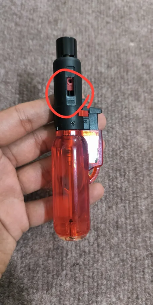 معمولا همه فندک های گاز خور اونجایی که گاز بهشون زده میشه یه اورینگ مشکی دارن که موقع گاز زدن باعث میشه گاز نشتی نده ولی این مدل فندک نداره و همین باعث میشه خوب نتونید گازش کنید از زیرش عکس گذاشتم.