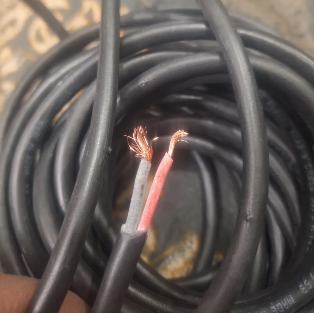 اینو بدونید که سیم 6 نیست کابل های استاندارد دو رشته از سیم های ابی و قرمز استفاده میشه ولی این قرمز و مشکیه سیم 2.5 در نظر بگیرید البته سیم 2.5 رو قیمت گرفتم متری 30 تومن دورشته سیم توی این کابل استفاده شده که میشه متری 60 تومن که اگه دو رشته سیم 2.5 به متراژ 30 متر میخریدم میشد 1800 ولی من این کابل رو خریدم 977 که بنظرم خیلی بصرفه تر بود