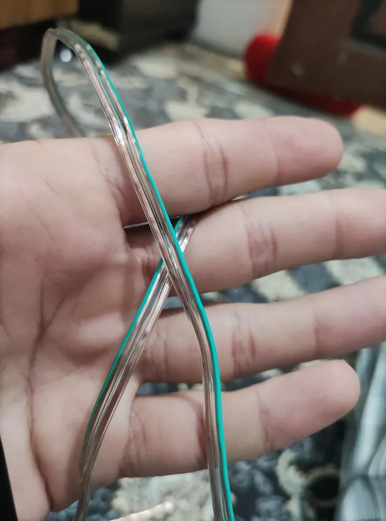 مشخصات کابل صحیح بود و ۲.۵ بود. ولی وقتی یه رشته از کابل رو ذوب کردم کاملا رویه مس از بین رفت و مغزی اون آلمینیومی بود. و کاملا به رنگ نقره ای در اومد. شاید چند میکرون لایه مسی روی مغزی باشه.