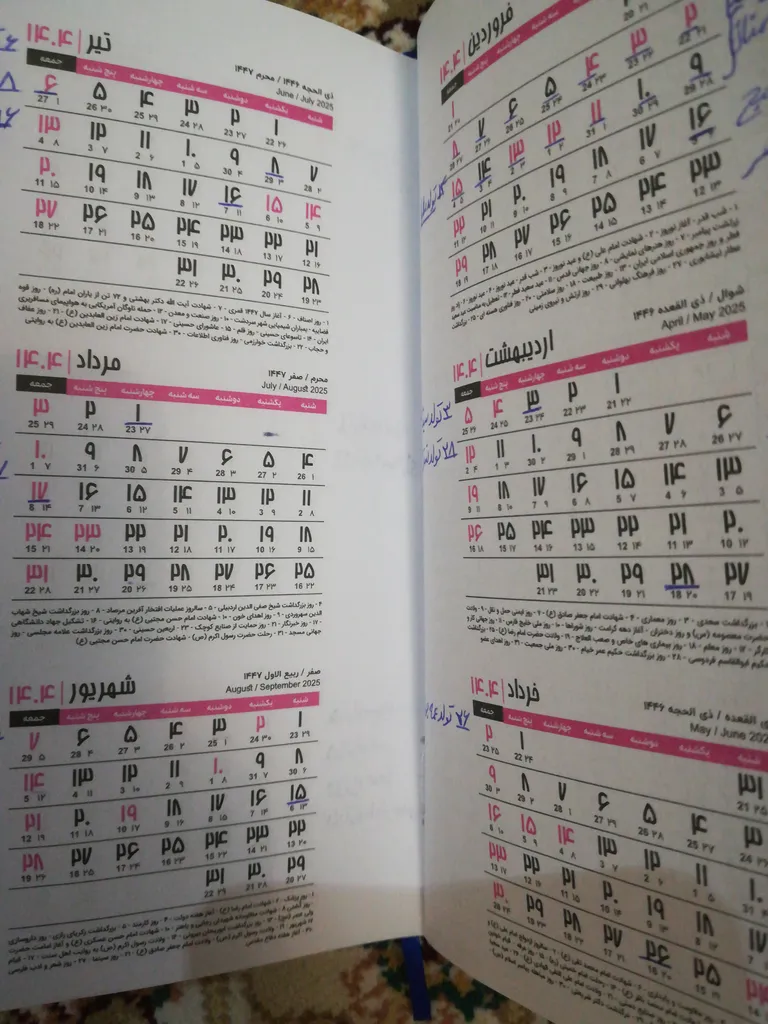 ناهید امیری حلمسلوئی : خیلیییی خوب وعالیه.درسته کوچیکه ولی برای هریه روز،یه برگه جدا طراحی شده وخیلی راحت میشه رویدادهای روزانه رونوشت.هرفصل یه رنگ خاصی داره.توی صفحه های ابتدایی،تقویم بصورت کل سال دریک نگاه(دردوصفحه)و درجلوتر،هرماه بهمراه روزهای هفته دریک نگاه،بهمراه رویدادها و تعطیلات روزها و همچنین ایام خاص مث خورشیدگرفتگی و...نشون داده شده