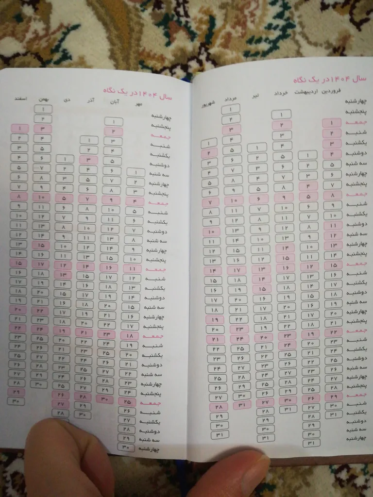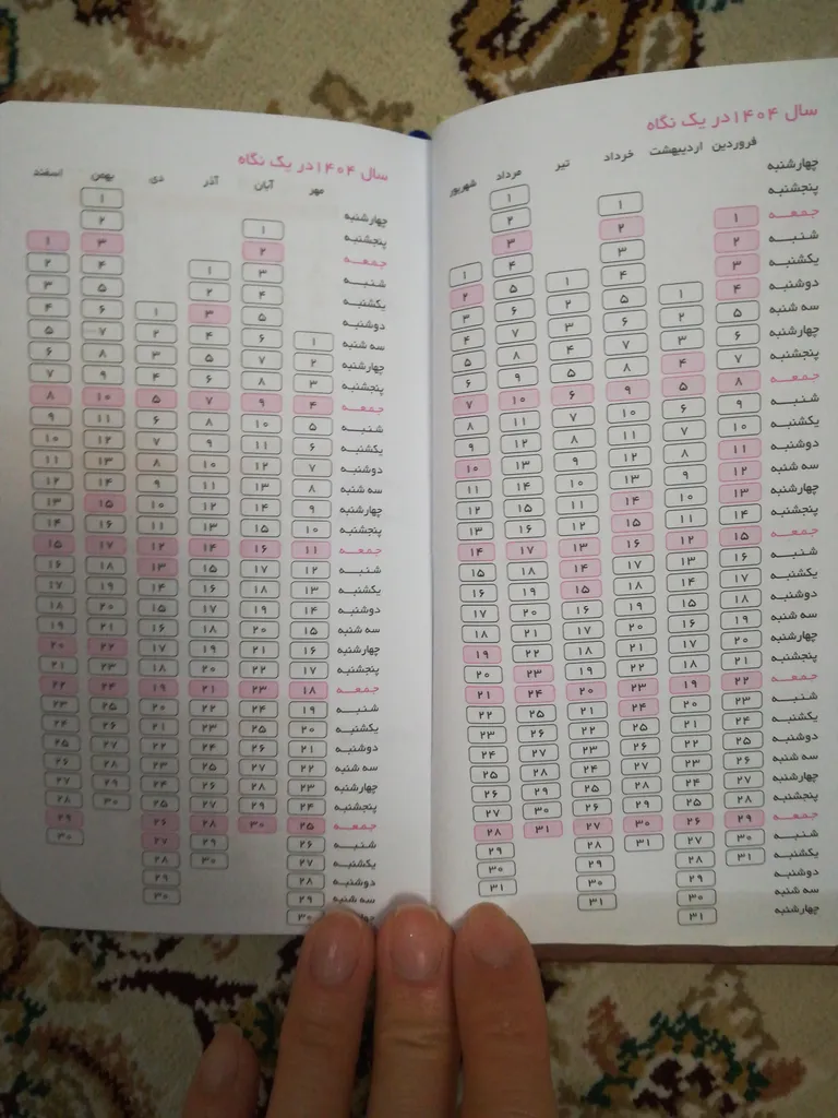 بعضی سال نامه ها پنج شنبه جمعه رو معمولا تو یه صفحه میزارن ولی این جداگونه بود و من این موردم خیلی پسندیدم