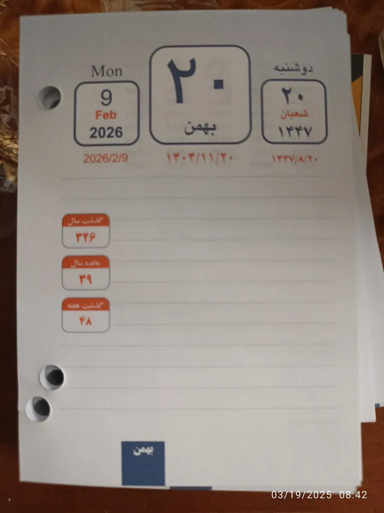 نظر و تجربه خرید تقویم رومیزیدر تاریخ ۰۳ اردیبهشت ۱۴۰۴