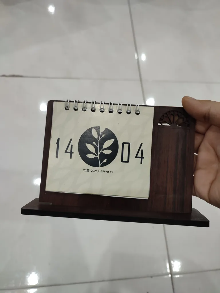 من این تقویم را سفارش دادم که اندازه کف دسته و از خودکار هم کمی کوچکتره ولی جذابه و میشه برای همیشه از اون استفاده کرد چون مثل تقویم های سالانه نیست که با تموم شدن سال دور بندازی. جنس چوبش می تونست بهتر باشه و جلا داده بشه ولی در کل دوستش دارم