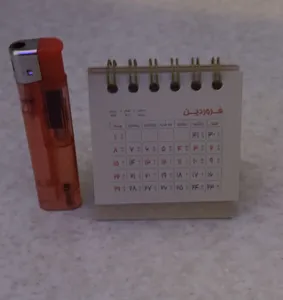تقویم خوبیه کیفیت خوبی هم داره فندک رو هم گذاشتم تا اندازه رو متوجه بشید مناسبت های هر ماه هم پشت صفحه همون ماهه