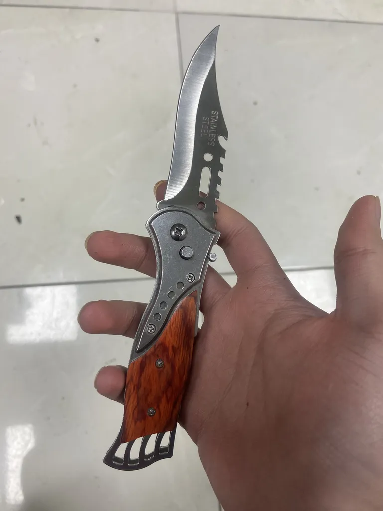 - ⬤ چاقوی تاشو : این نوع چاقو به دلیل طراحی تاشو، فضای کمی را اشغال میکند و به راحتی قابل حمل است. خریداران از تیزی و کارایی بالای این چاقوها راضی بودهاند. با این حال، برخی به کیفیت پایین برخی از مدلها و عدم ایمنی در استفاده اشاره کردهاند.