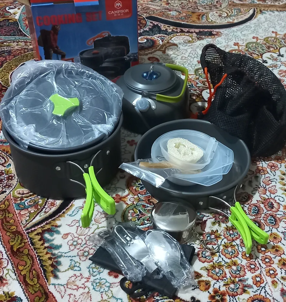 - ⬤ مجموعه ظروف مسافرتی : این مجموعهها شامل ظروف مختلف برای پخت و پز و سرو غذا هستند. خریداران به کیفیت و تنوع این مجموعهها اشاره کردهاند. برخی از خریداران از طراحی جمع و جور و سبک بودن این ظروف ابراز رضایت کردهاند. اما برخی دیگر به عدم وجود قاشق و چنگال در برخی مجموعهها و کیفیت پایین برخی از ظروف انتقاد کردهاند.
