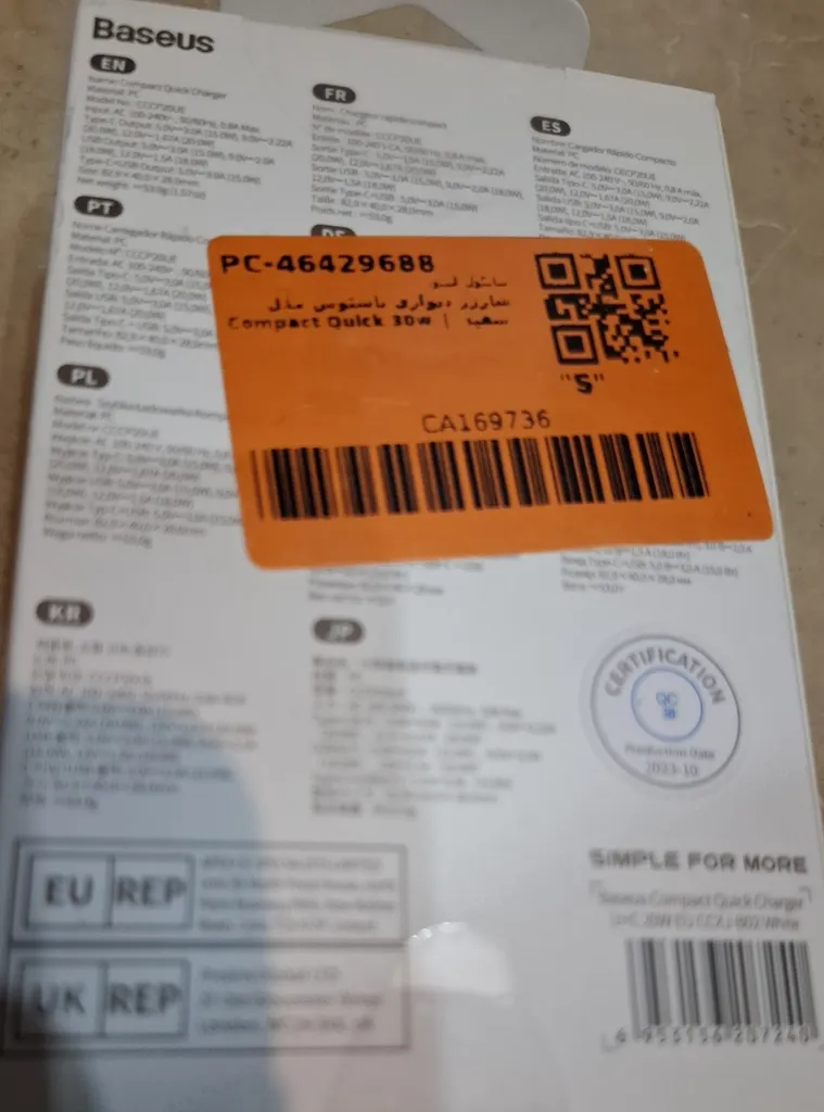 - ⬤ تاریخ تولید : تاریخ تولید و انقضای شارژر نیز باید مورد توجه قرار گیرد. خریداران به شارژرهای قدیمی و تاریخ گذشته انتقاد کرده و به دنبال گزینههای جدیدتر هستند. تاریخ تولید میتواند به کیفیت و کارایی محصول اشاره کند.