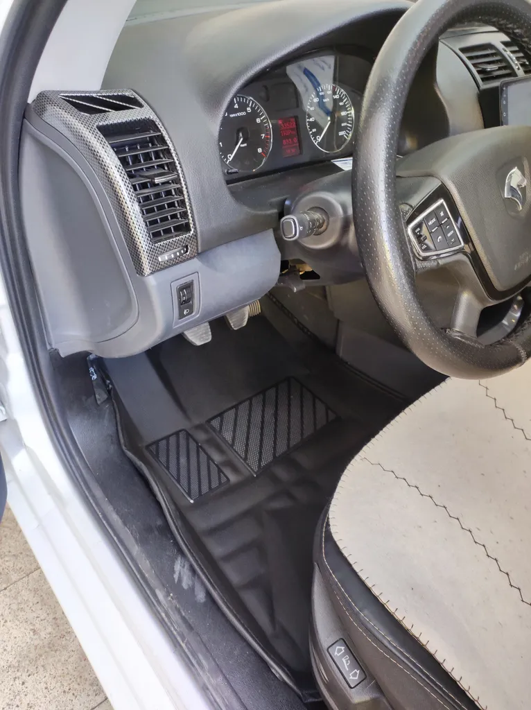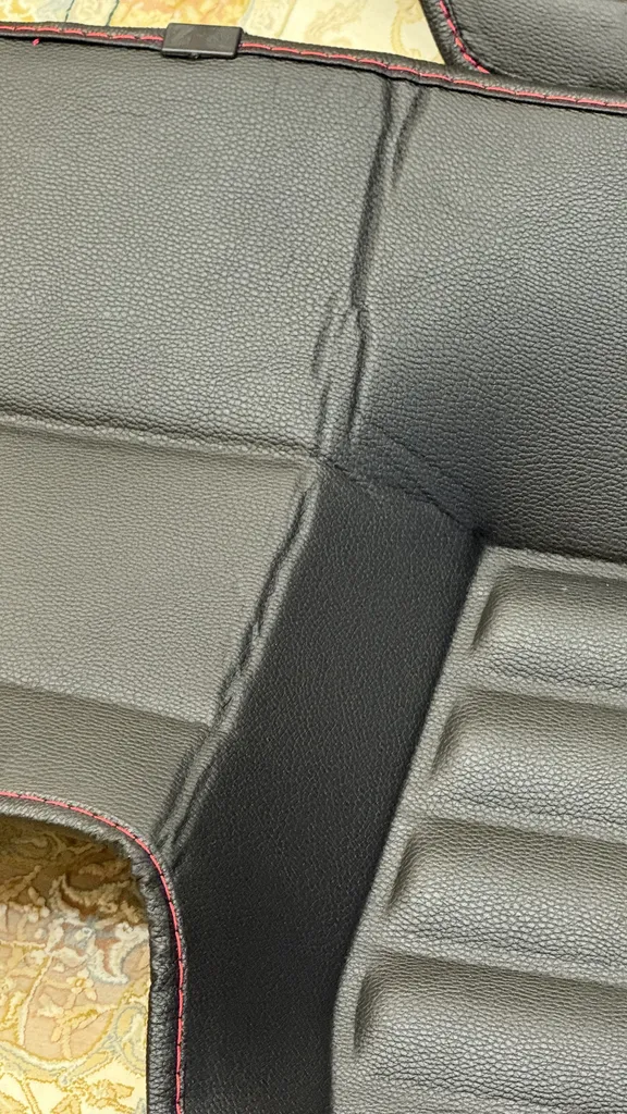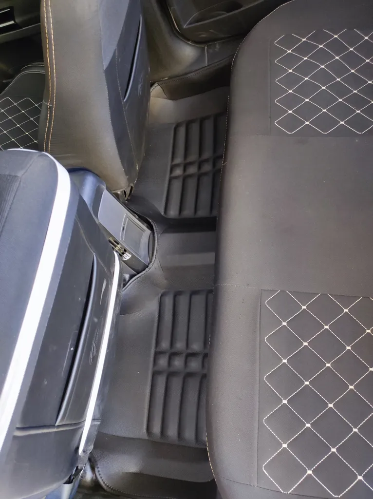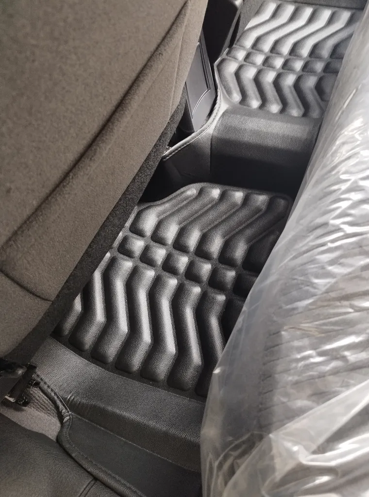 دو تا ایراد بگیرم یکی لبه های کفی های جلو کمی بزرگتره (توی عکس معلومه) و کمی چین میخوره و دوم اینکه کفی های عقب هر چند کامل زیر پا رو میگیره اما جلوتر و زیر صندلی جلو نمیره (اینم توی عکس فرستادم) اما لبه عقب کفی های عقب کامل اومده بالا و این خیلی خوبه