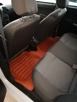 متاسفانه کفپوش به خوبی تو جای خودش قرار نمیگیره و حتی جلوی پدال گاز رو میگیره، چون قسمتی که برای کفپوش چسب تعبیه کردن روی پلاستیک قرار میگیره و اصلا فیکس نمیشه، ضمنا کفی عقب برای جلوی پای سرنشینان ردیف سومه و برای صندوق نیست