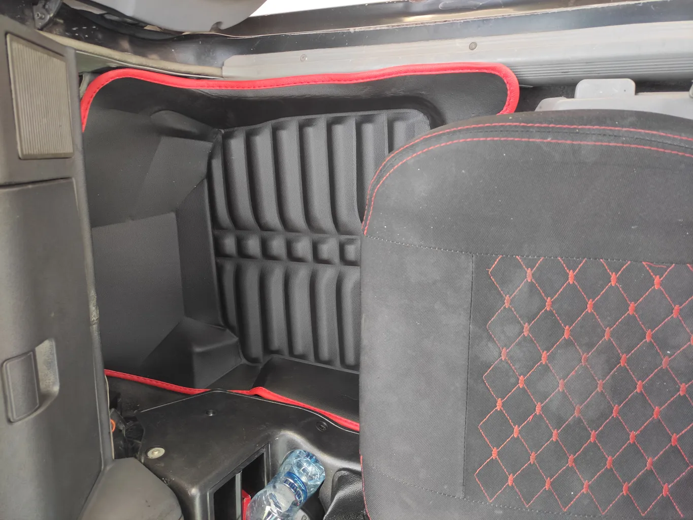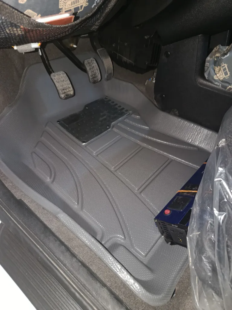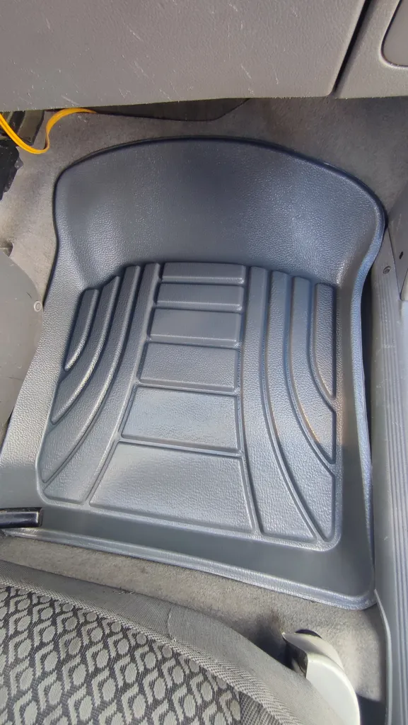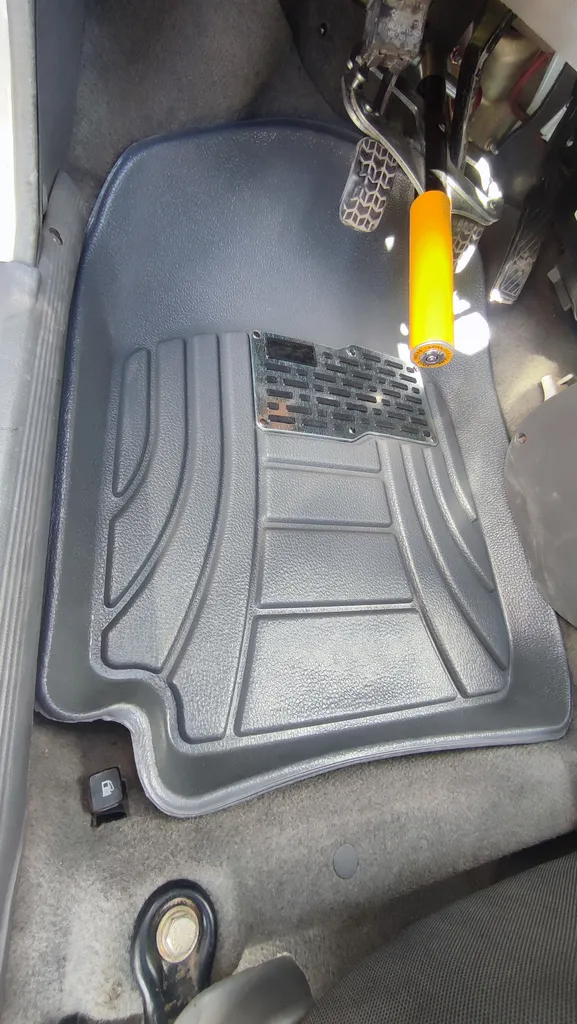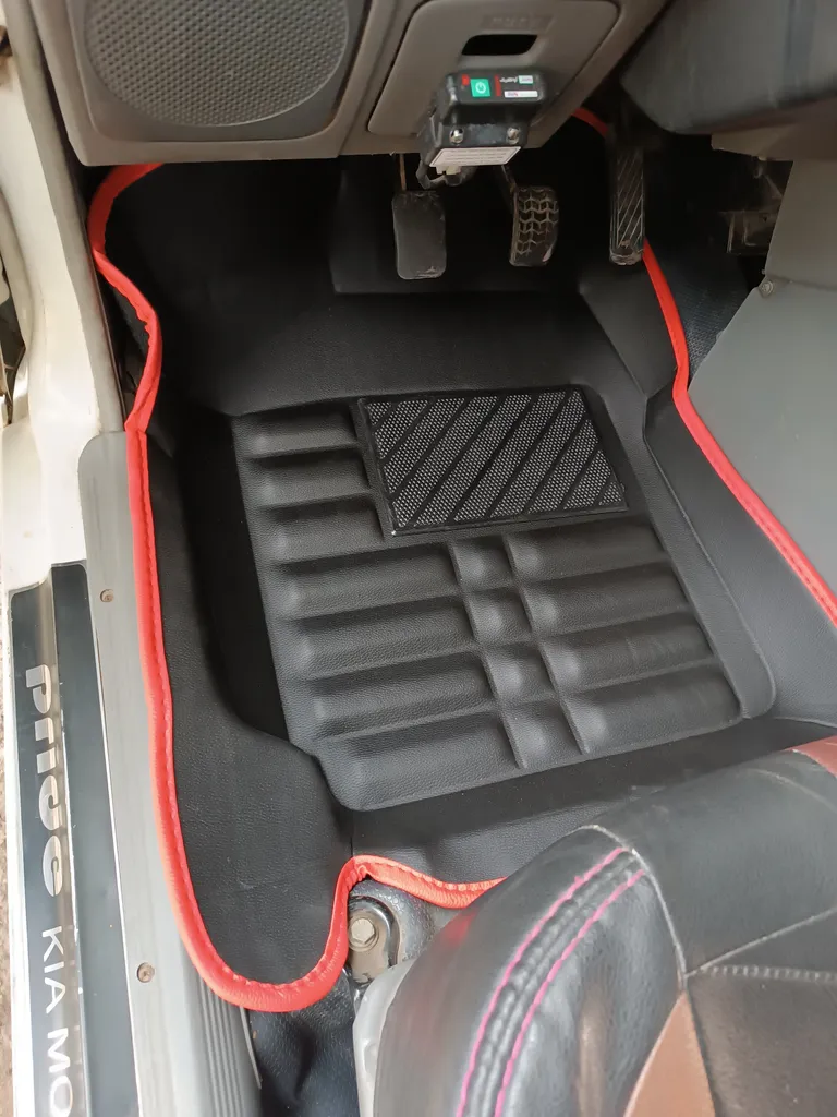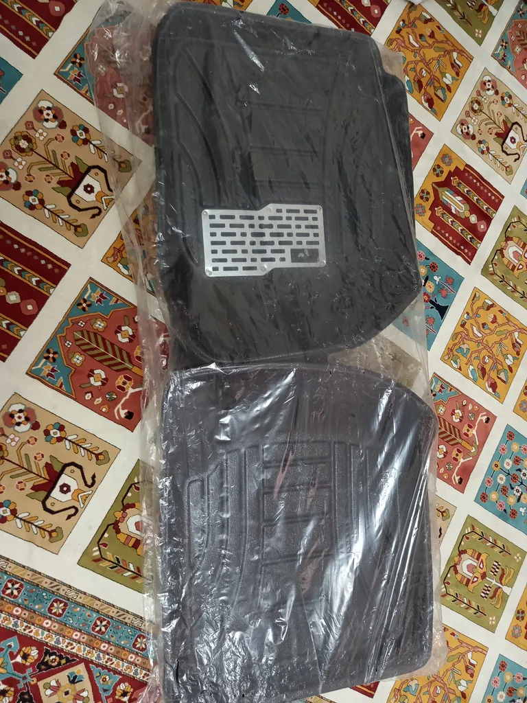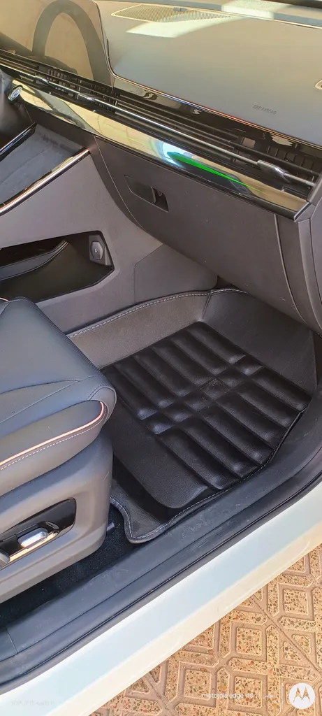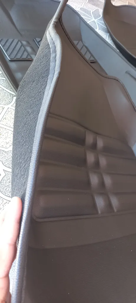 محاسن این بود که از لحاظ اندازه کاملا فیت بود(البته چون ماشین من اتومات بود سر پدال ها به مشکل نخوردم) و جنس خیلی نرم و خوبی داره جوری که با انگشت دست فرو میره داخل و برمیگرده و زیر پا راحته و در کل رخ خوبی به کف ماشین میده