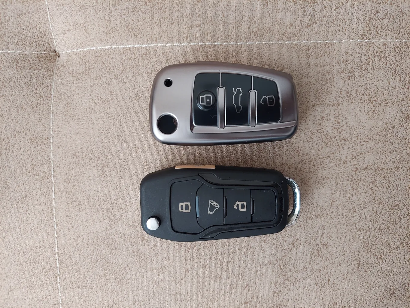 مجتبی ضیائی طباطبائی : قاب ریموت پژو ۲۰۶ ؛ متاسفانه استاندارد نیست.ارزش مرجوع کردن هم نداشت.مجبور شدم قسمت آرم دار قاب ریموت فابریکی ماشین با قسمت رویی این قاب باهم ادغام کنم که با هزار بدبختی جفت و جور شد و کارم راه افتاد.در تصویری که گذاشتم ،تفاوت فابریکی و فیک کاملا مشخصه. در کل ارزش خرید ندارد