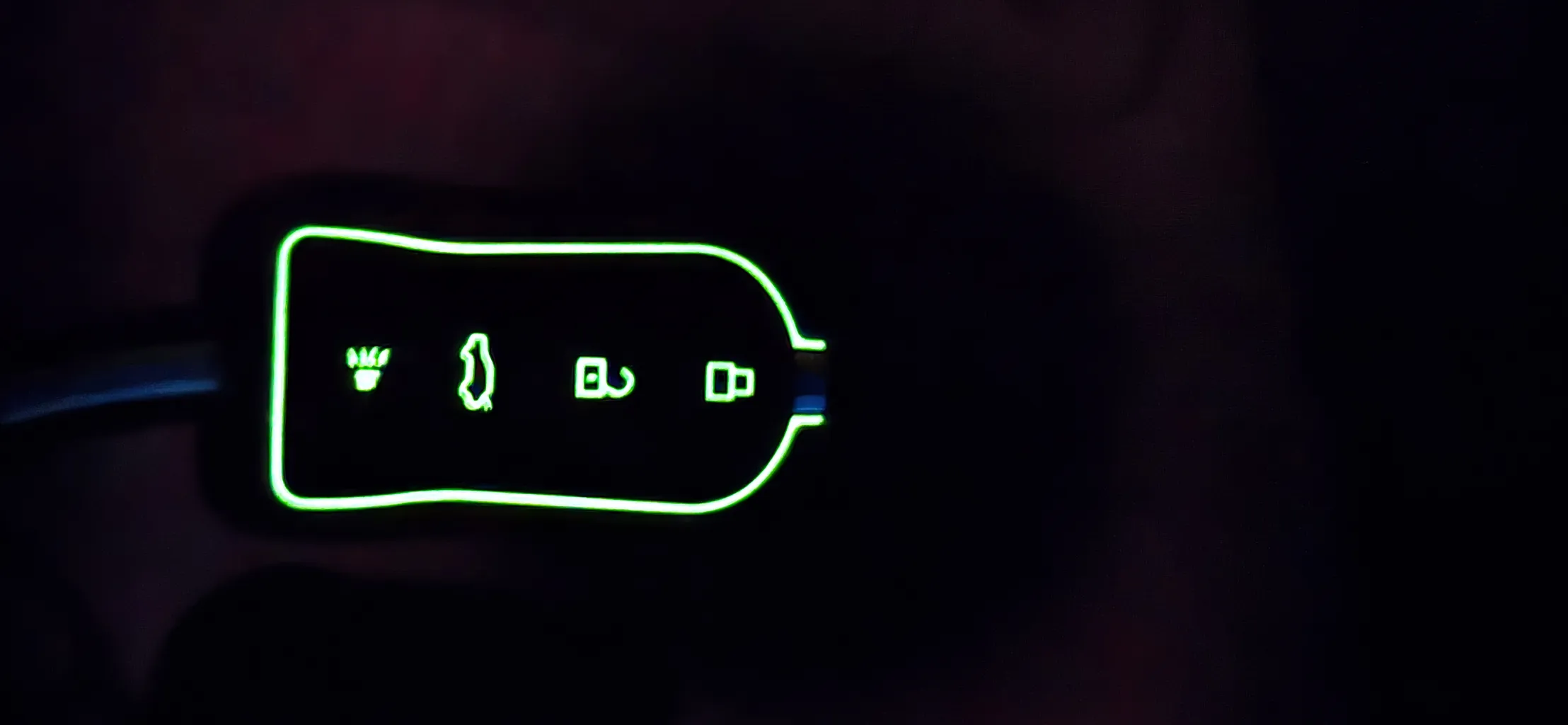 داخل تاریکی نوار سفید رنگ جلوی کاور و دور دکمه ها شبرنگ هست