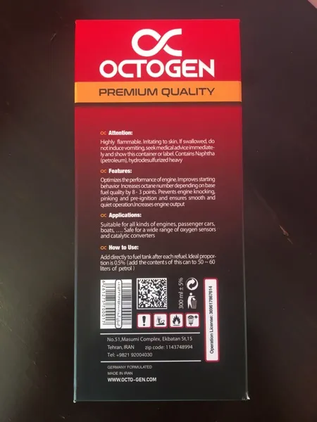 اکتان خیلی خوبیه هم قیمتش مناسبه هم اینکه ایرانیه مثل بقیه اکتانا که معلوم نیست کجا تولید میشن و چی داخلشه نبود، ناک ماشینمو کامل از بین برد شتاب ماشینم واقعا بهتر شده. نمایندگی های کرمان موتور هم این مارک رو توصیه میکنن همیشه