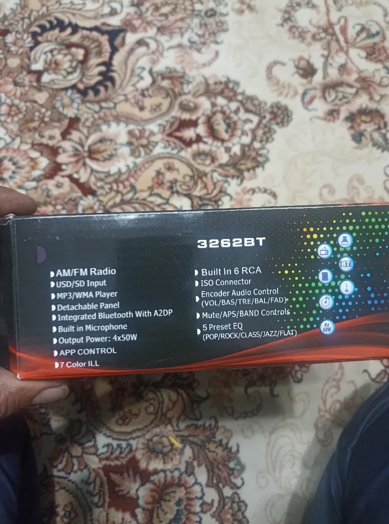 • فرزین نوبهار : یه پخش اقتصادی و با کیفیت قابل قبول شدت صدا در حد ضبط های چند میلیونیه تنظیمات صدا هم به نسبت قیمت مورد قبول هست بلوتوث هم به راحتی متصل میشه و اسمش car bt هست نور صفحه نمایش قابل تغییره و حتی در طول روز هم خوب دیده میشه و رنگ های زیبایی داره سوکت ایزویی داره و برای اکثر خودروها نیازی به سیم کشی مجدد نخواهید داشت سوکت ایزویی ، ریموت کنترل و قاب پنل هم داخل جعبه موجود هست