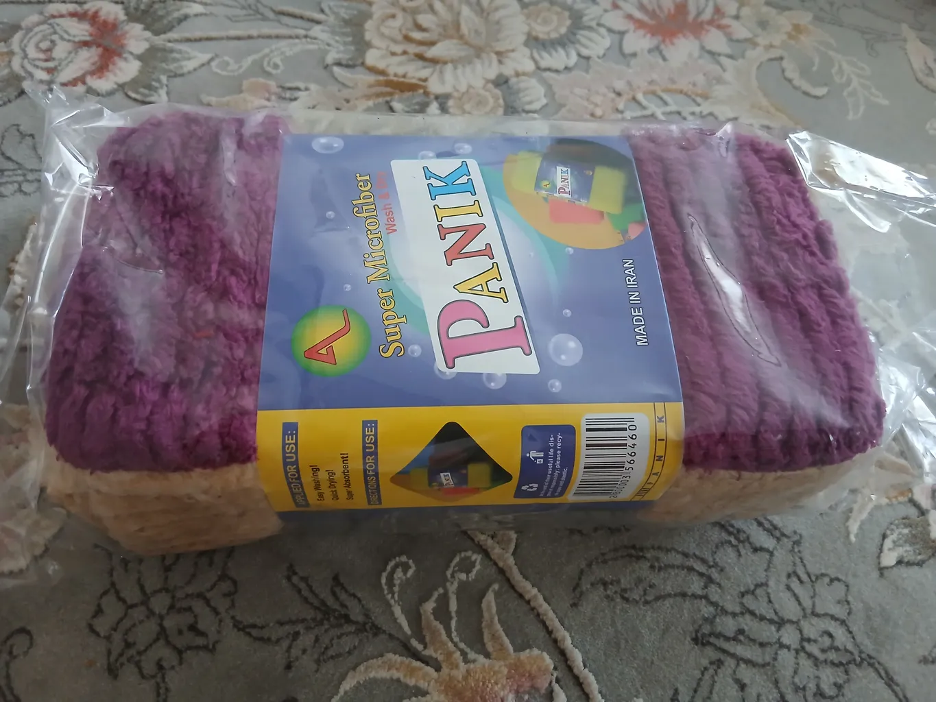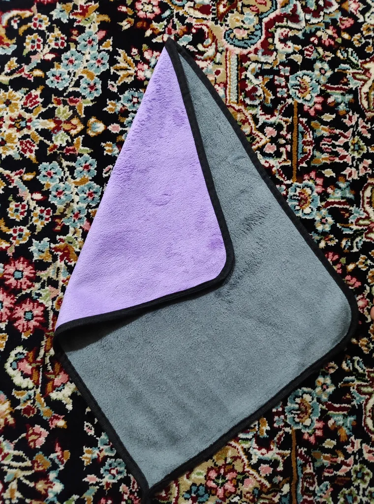 حامد هاشم زاده : میکرو فایبر ؛ یکبار دستمال میکرو گرفتم اون عالی بود توی عکسم متوجه میشید رنگ قهوه ای داره جنسش واقعا خوب بود فقط ضخامت کم داشت گفتم اینم مثل اونه ولی نیس اصلا بدرد ماشین نمیخوره ، دو رو هس یکطرفش نایلونیه بدرد سینک ظرفشویی و پاک کردن . رنگ بنفشه اونه