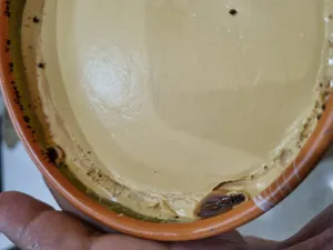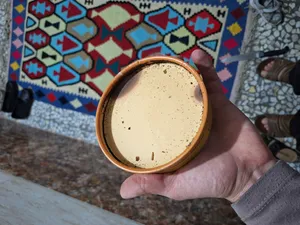 کپک زده بود روش . نصفش هم انگار در معرض حرارت قرار گرفته بود سوخته بود . تقریبا نصفش قابل استفادست ولی خب فک نکنم کارایی لازم رو داشته باشه چون هم زود خشک میشه و هم خیلی سخت پاک میشه اون حالت روغنی که بعد از استفاده باید به سطح رنگ بده رو خیلی نمیده . با تشکر