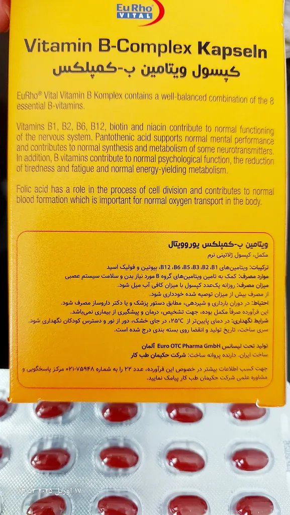نظر و تجربه خرید کپسول ب کمپلکس یوروویتال بسته 60 عددیدر تاریخ ۱۲ اردیبهشت ۱۴۰۴