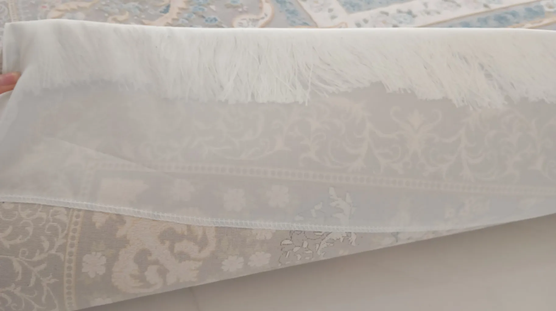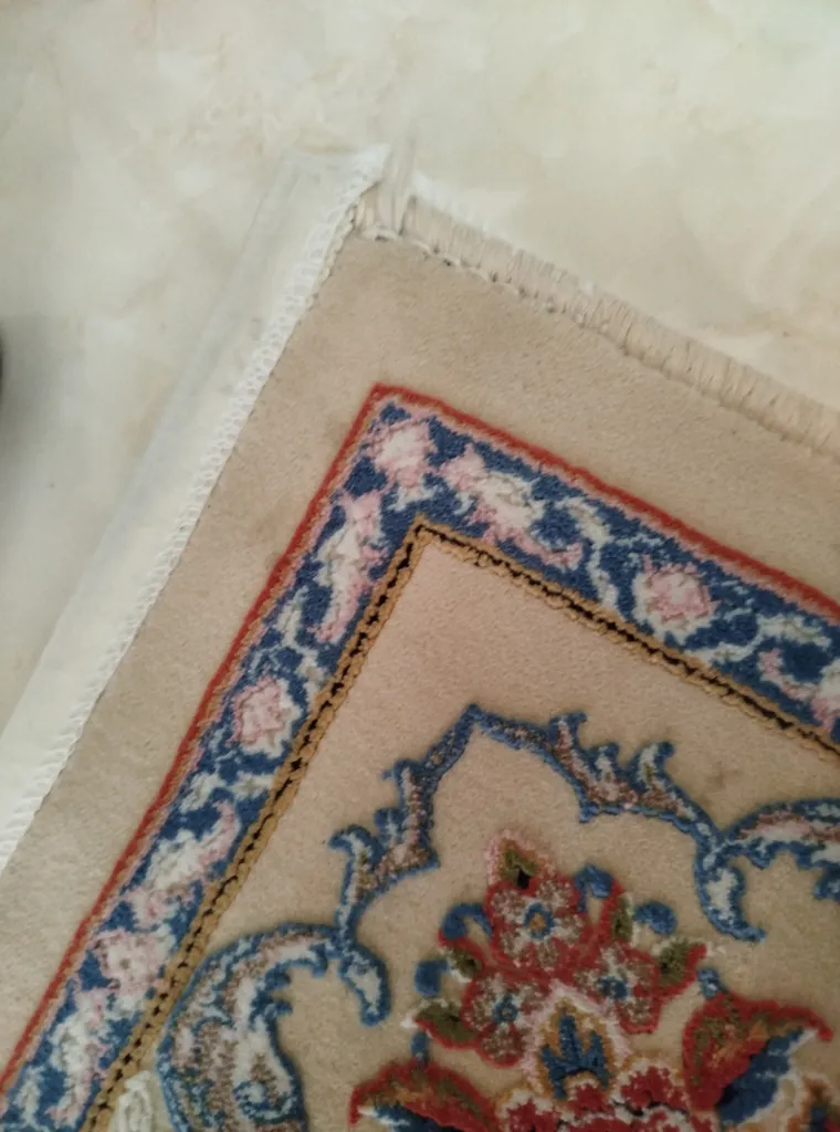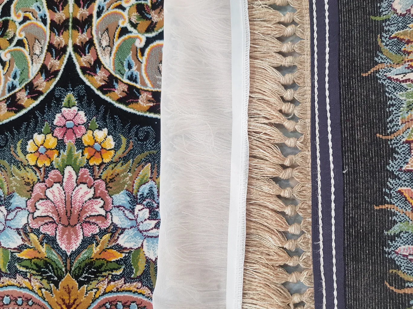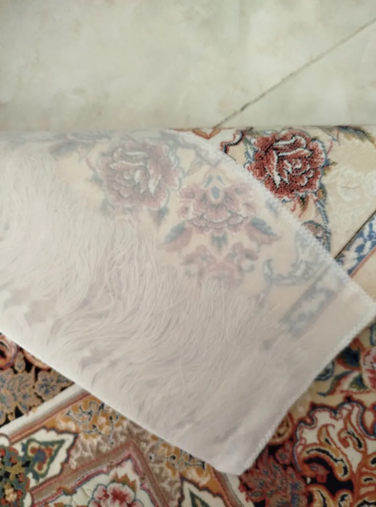 شهلا علی محمد خانی : جنس حریر اندازه کمی بلند تراز فرش چسبندگی چسب مناسب عالی
