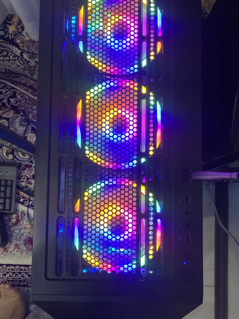 - ⬤ فنهای RGB : این فنها به دلیل نورپردازی جذاب و زیبایی که به کیس میبخشند، مورد توجه قرار گرفتهاند و خریداران از زیبایی و جلوه بصری این فنها راضی هستند. این فنها معمولاً دارای LEDهای قابل تنظیم هستند که میتوانند جلوههای نوری مختلفی را ایجاد کنند، اما برخی از کاربران به کیفیت نورپردازی و مشکلاتی در هماهنگی با مادربرد اشاره کردهاند.